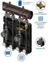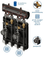 2 x Grupa pompowa z zaworem termostatycznym ESBE VTA 322 Kvs 1.6 + pompa Grundfos 25/7