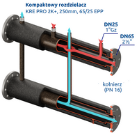 Kompaktowy kolektor rozdzielający 250mm KRE PRO 2K+ DN65/25